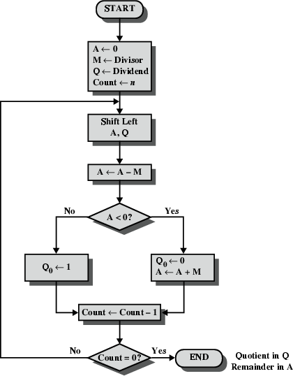 Division is somewhat more than multiplication but is based on the same general principles. The operation involves repetitive shifting and addition or subtraction.