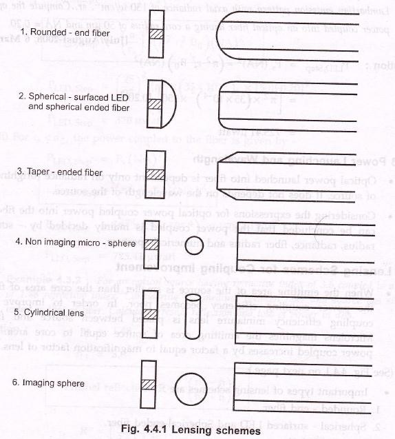- When When the emitting area of the source is smaller than the core area of fiber, the power coupling efficiency becomes poor. In order to improve the coupling efficiency miniature lens is placed between source and fiber. Microlens magnifies the emitting area of source equal to core The power coupled increases by a factor equal to magnification factor of lens.