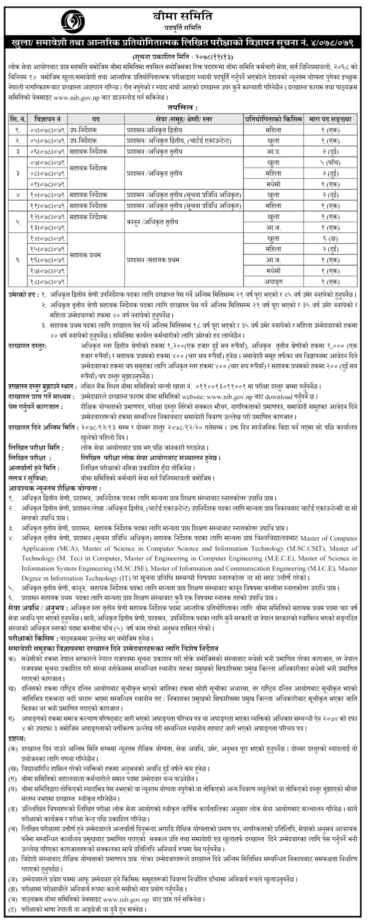 Job Vacancy Application Deadline: 2078 Chaitra 13 ( Double Fee: upto Chaitra 20)