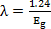 where, energy (E) is in joules and wavelength (λ) is in meters. Expressing the gap energy (Eg) in electron volts and wavelength (λ) in micrometers for this application.
