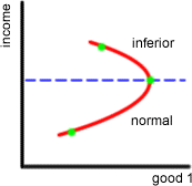 **Normal goods are those, which consumers want to buy more of them as their income increases. Inferior are those, which the consumption falls when the consumer’s income increases (the income-consumption curve bends backwards as the income increases).