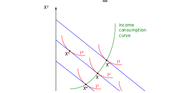 Income-consumption curve – Curve tracing the utility-maximizing combinations of two goods as a consumer’s income changes.