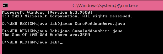 System.out.println("The Sum Of 100 Odd Numbers are:" + sum);