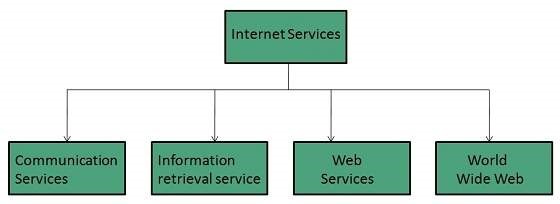 Internet Services allow us to access a huge amount of information such as text, graphics, sound, and software over the internet. The following diagram shows the four different categories of Internet Services.