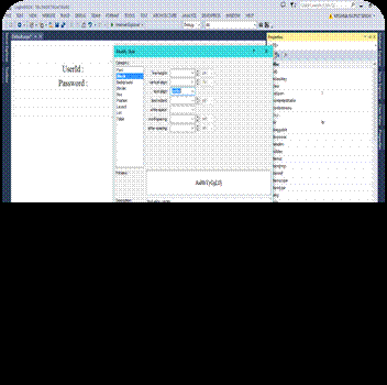 Afterwards, drag and drop two labels, two textbox and one button below design view source code. Set the password textbox properties Text Mode as a password.